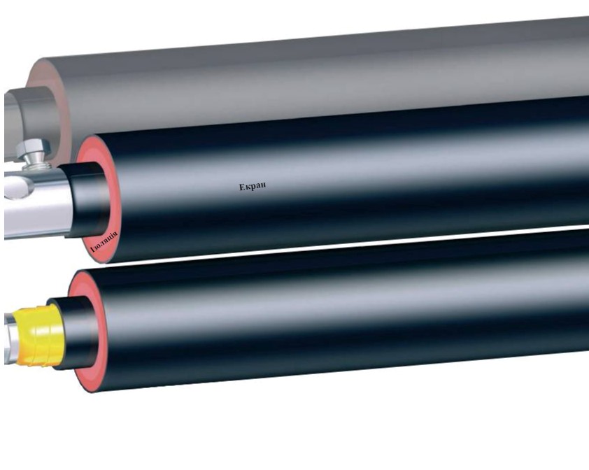 Екранована ізоляція являє собою двошарові термоусаджувальні манжети де внутрішній шар (червоний) є ізоляційним, а зовнішній (чорний) напівпровідним.